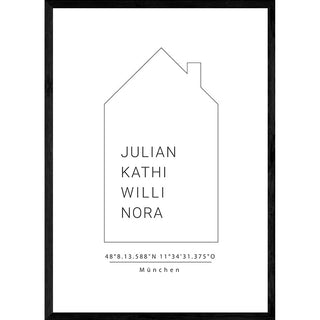 Personalisiertes Poster – Zuhause mit Koordinaten