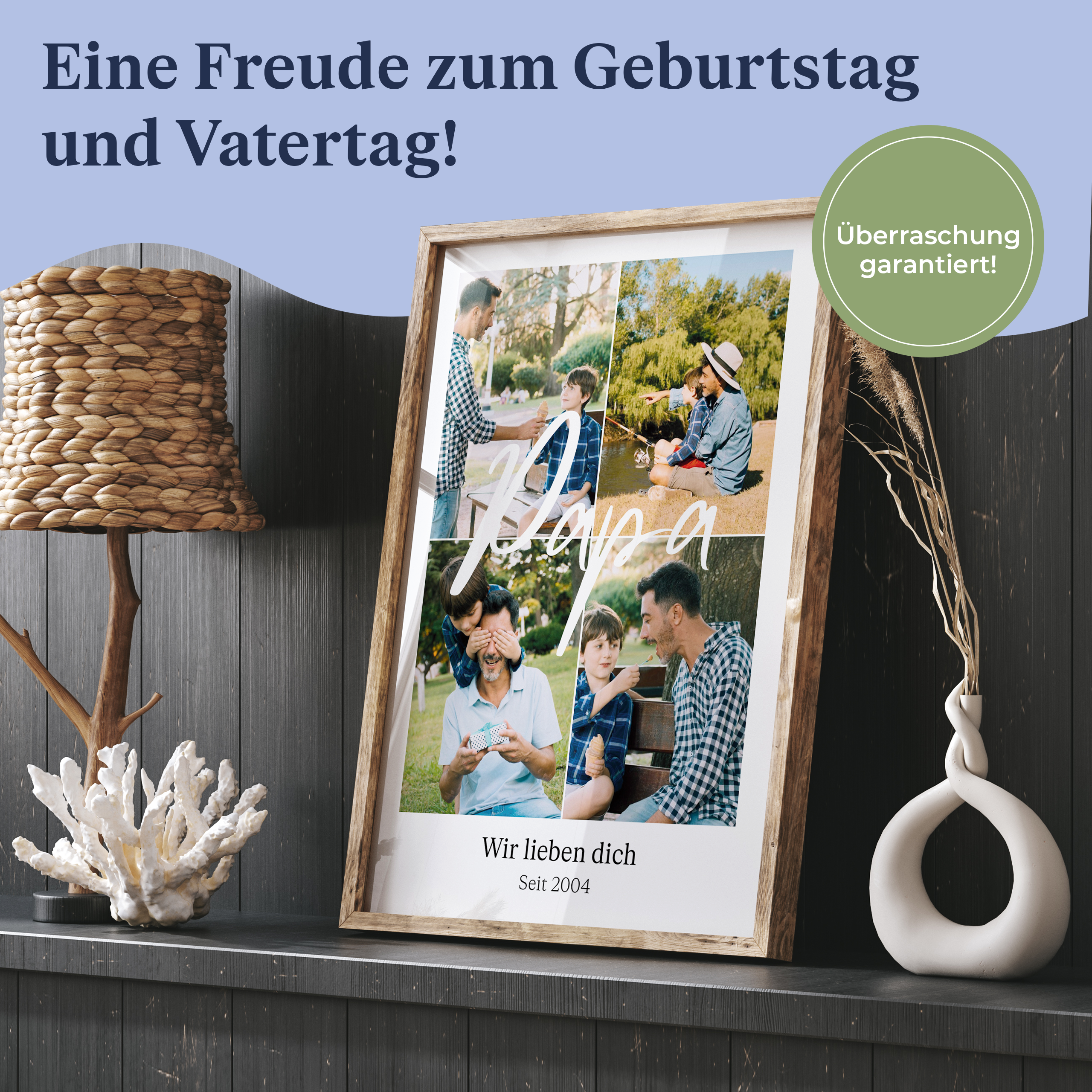 • PERSONALISIERTE GESCHENKE – Dieses PAPA Bild ist mehr als ein Foto – es ist ein persönliches Dankeschön an einen besonderen Vater. Gestalte ein personalisiertes Geschenk mit 4 eigenen Fotos und einer Botschaft, die von Herzen kommt. Beliebt als Geschenk für Papa oder Papa Geburtstagsgeschenk.
