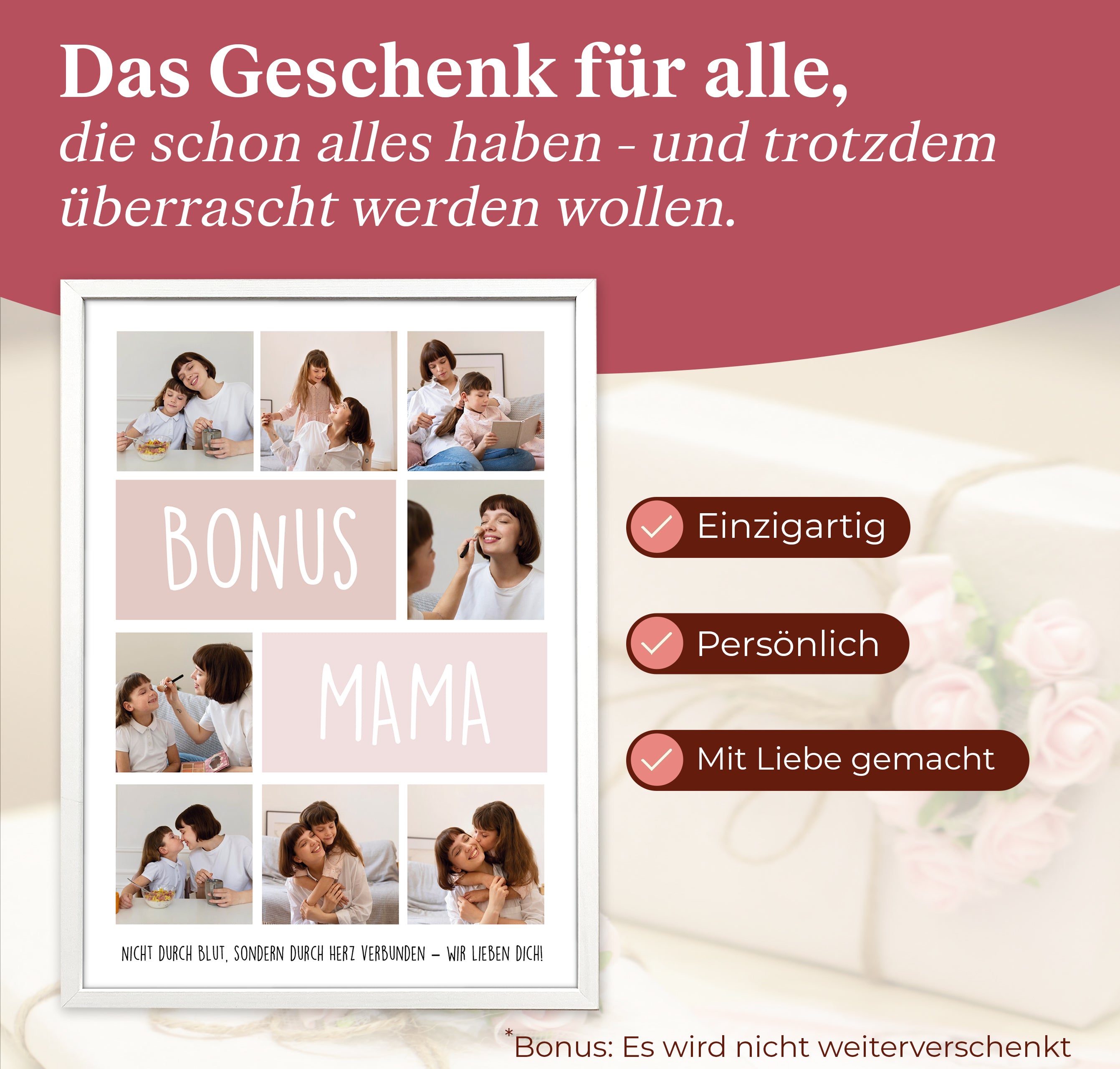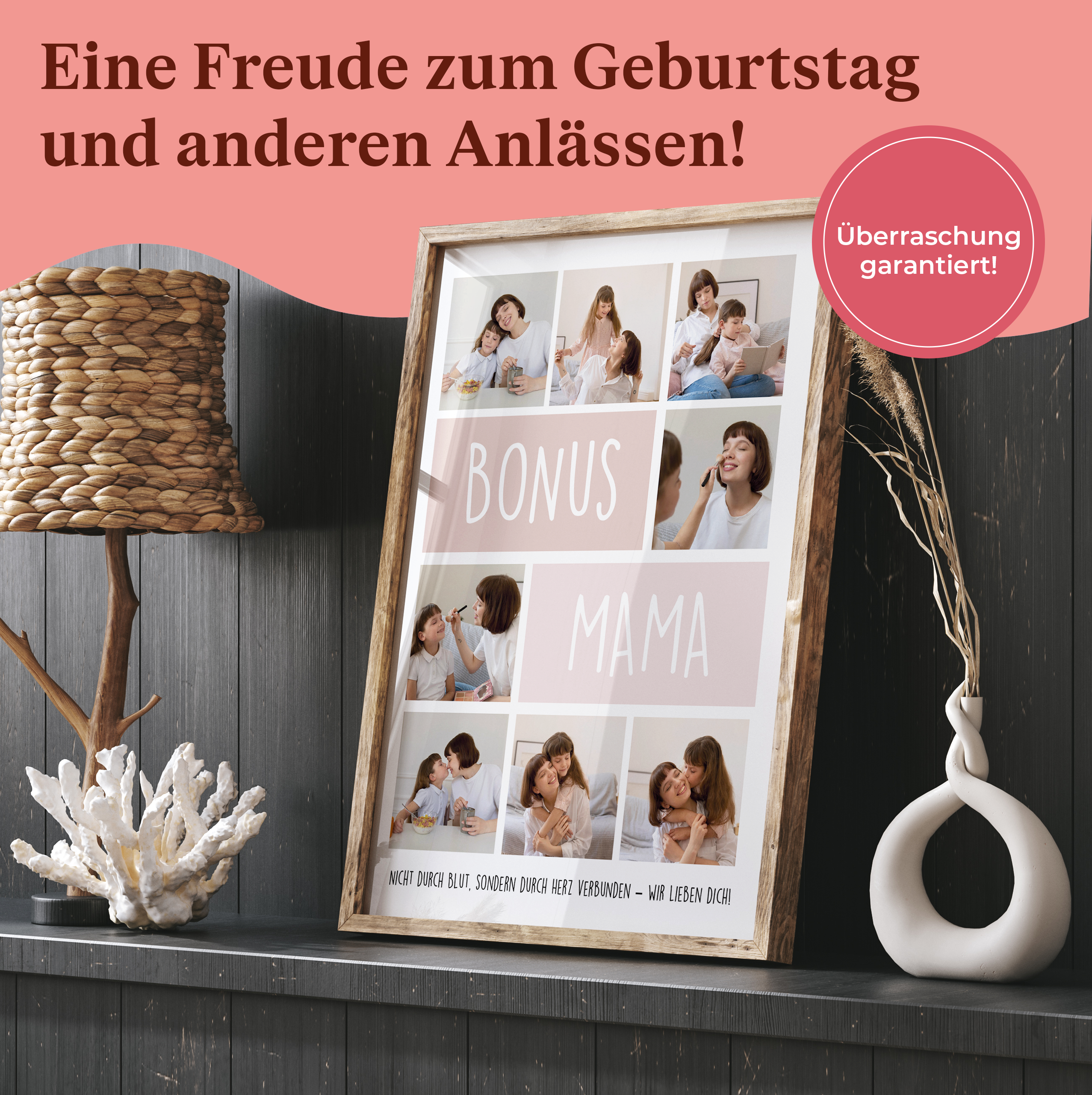 • DAS PERFEKTE MUTTERTAGSGESCHENK — Überraschen Sie Ihre Bonus Mama mit einem Geschenk: einer personalisierten Fotocollage, die Ihre tiefe Liebe und Wertschätzung zum Ausdruck bringt. Dieses besondere Muttertagsgeschenk ehrt die wundervolle Rolle, die sie in Ihrem Leben spielt