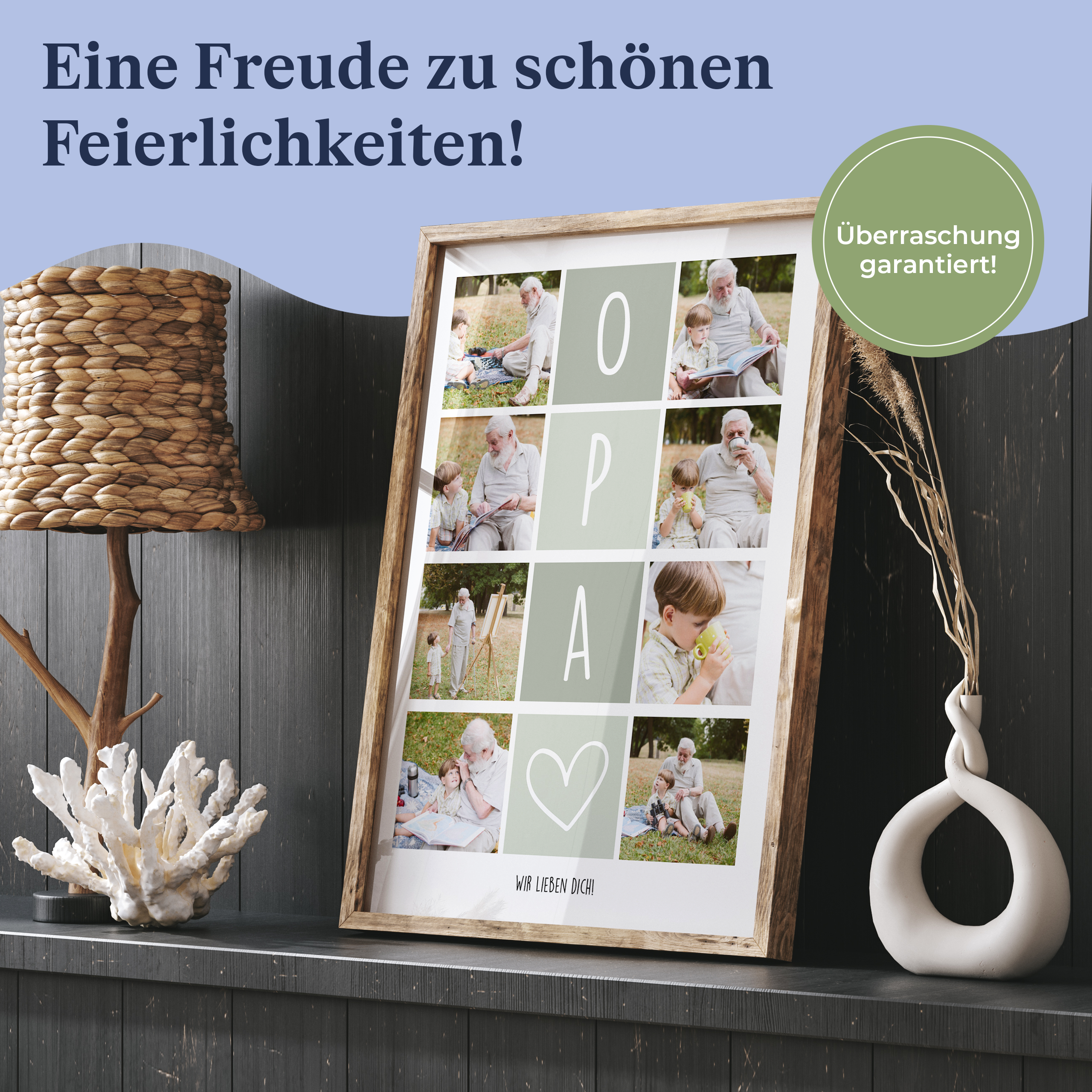 • PERSONALISIERTE GESCHENKE – Dieses OPA Bild ist mehr als ein Foto – es ist ein liebevolles Dankeschön für den besten Großvater. Gestalte ein personalisiertes Geschenk mit 8 eigenen Fotos und einer Botschaft, die von Herzen kommt. Ideal als Geschenk für Opa zu jedem Anlass