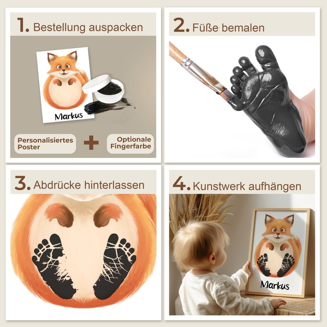 Personalisiertes Poster – Baby Fußabdruck Motiv Fuchs