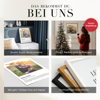 • SUCHST DU ETWAS BESONDERES? – Als Highlight legen wir bei jeder DinA3 Bestellung eine wunderschöne goldgeprägte Geschenkverpackung bei. Damit bist du direkt bereit für den großen Anlass