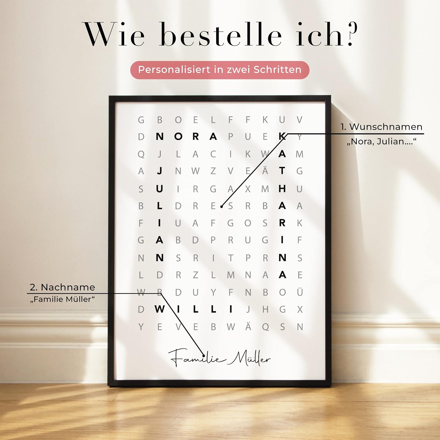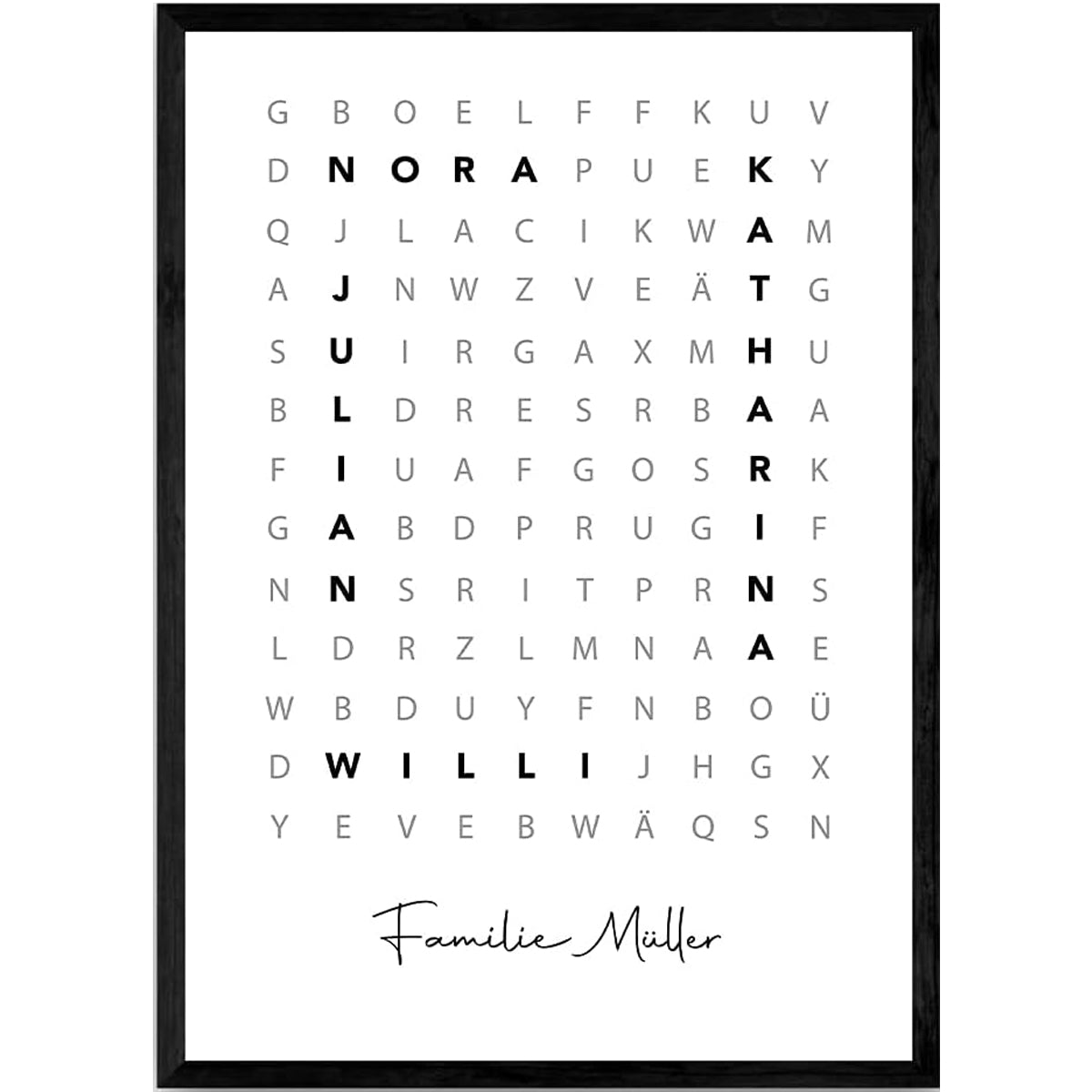 Personalisiertes Poster – Familien Wortsuche Hochformat