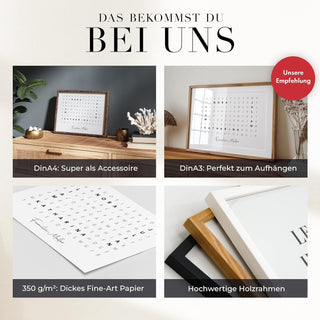 Unsere Designs sind modern, clean und gleichzeitig warm und einladend – perfekt, um deinem Zuhause Charakter zu geben oder jemandem ein einzigartiges Geschenk zu machen. Ob für Hochzeiten, Geburtstage oder einfach als kleines „Danke“ zwischendurch: Unsere Prints berühren Herzen und bleiben unvergesslich.