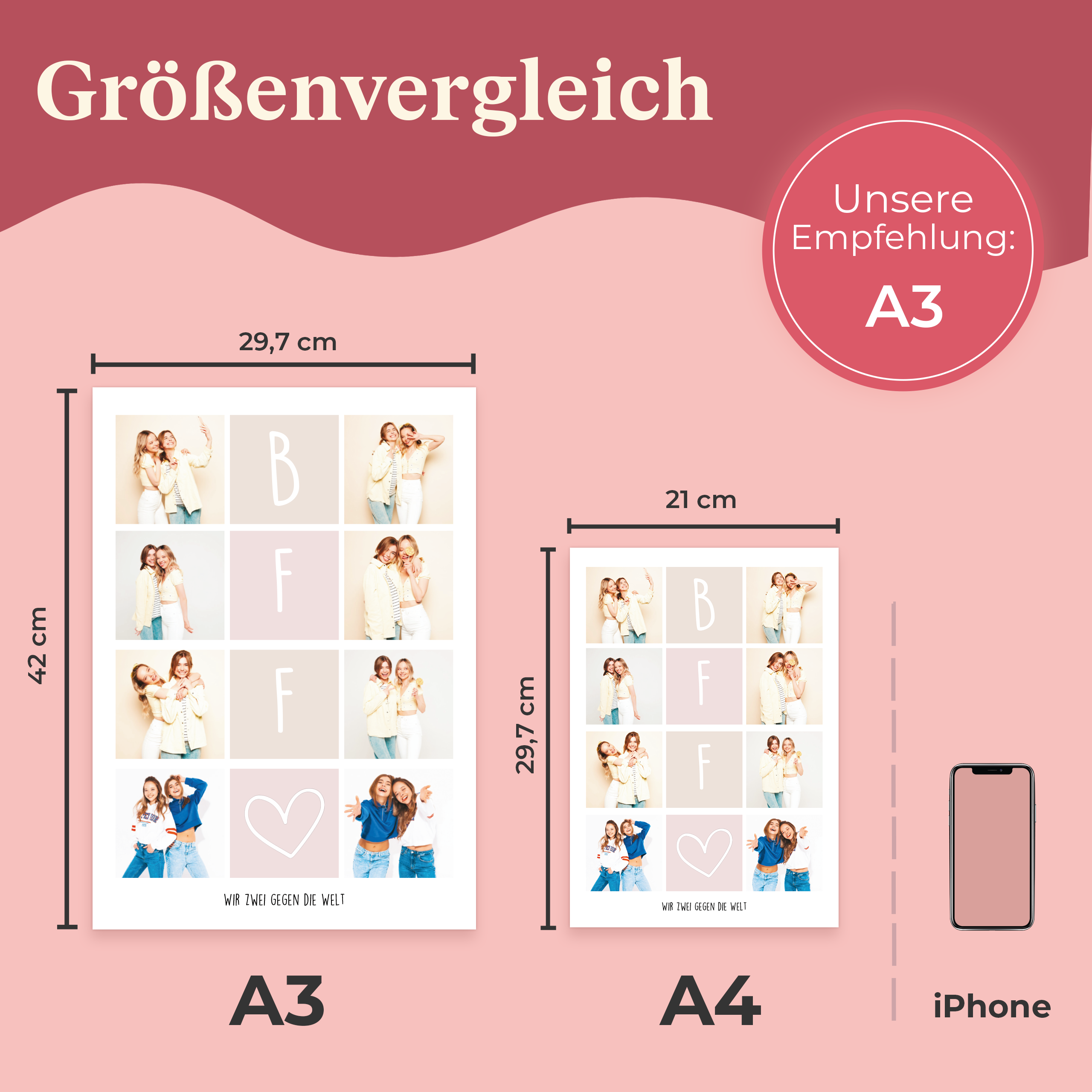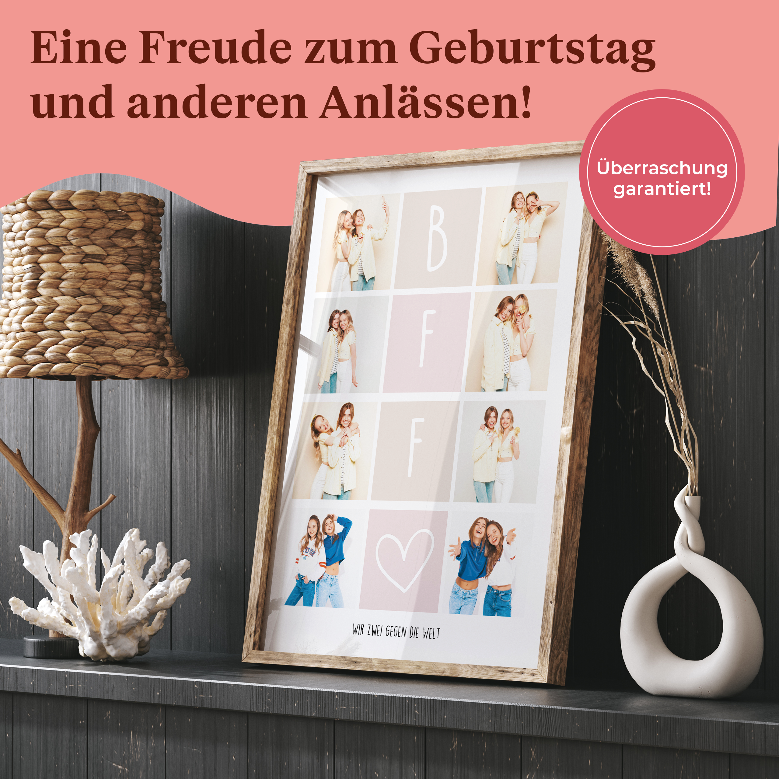 • PERSONALISIERTE GESCHENKE – Dieses BFF Bild ist mehr als ein Foto – es ist eine Hommage an eure Freundschaft. Gestalte ein personalisiertes Geschenk mit 8 eigenen Fotos und einer Botschaft, die von Herzen kommt. Beliebt als Geschenk für Freundin, Geburtstag Freundin oder einfach als kleine Überraschung zwischendurch