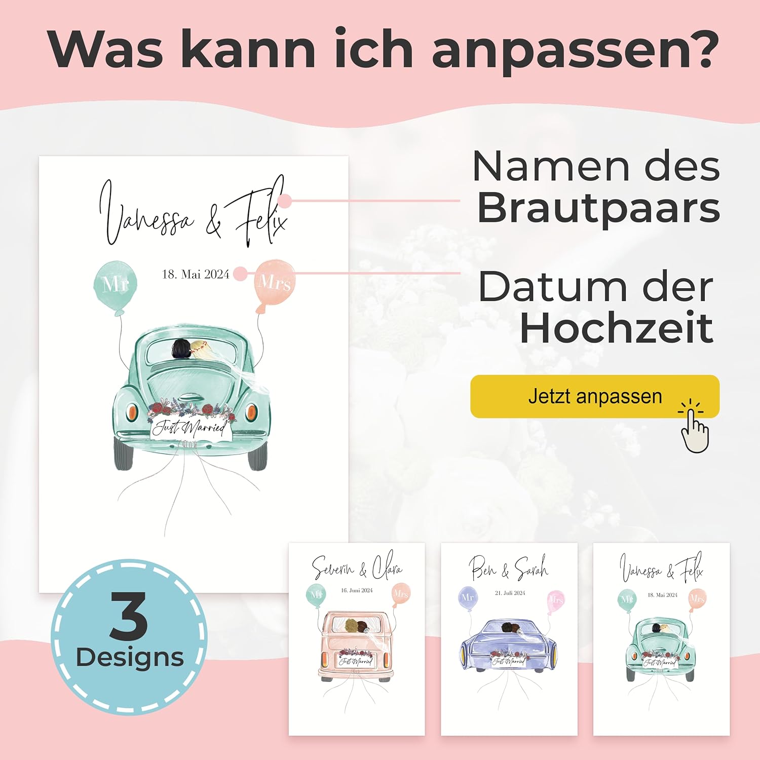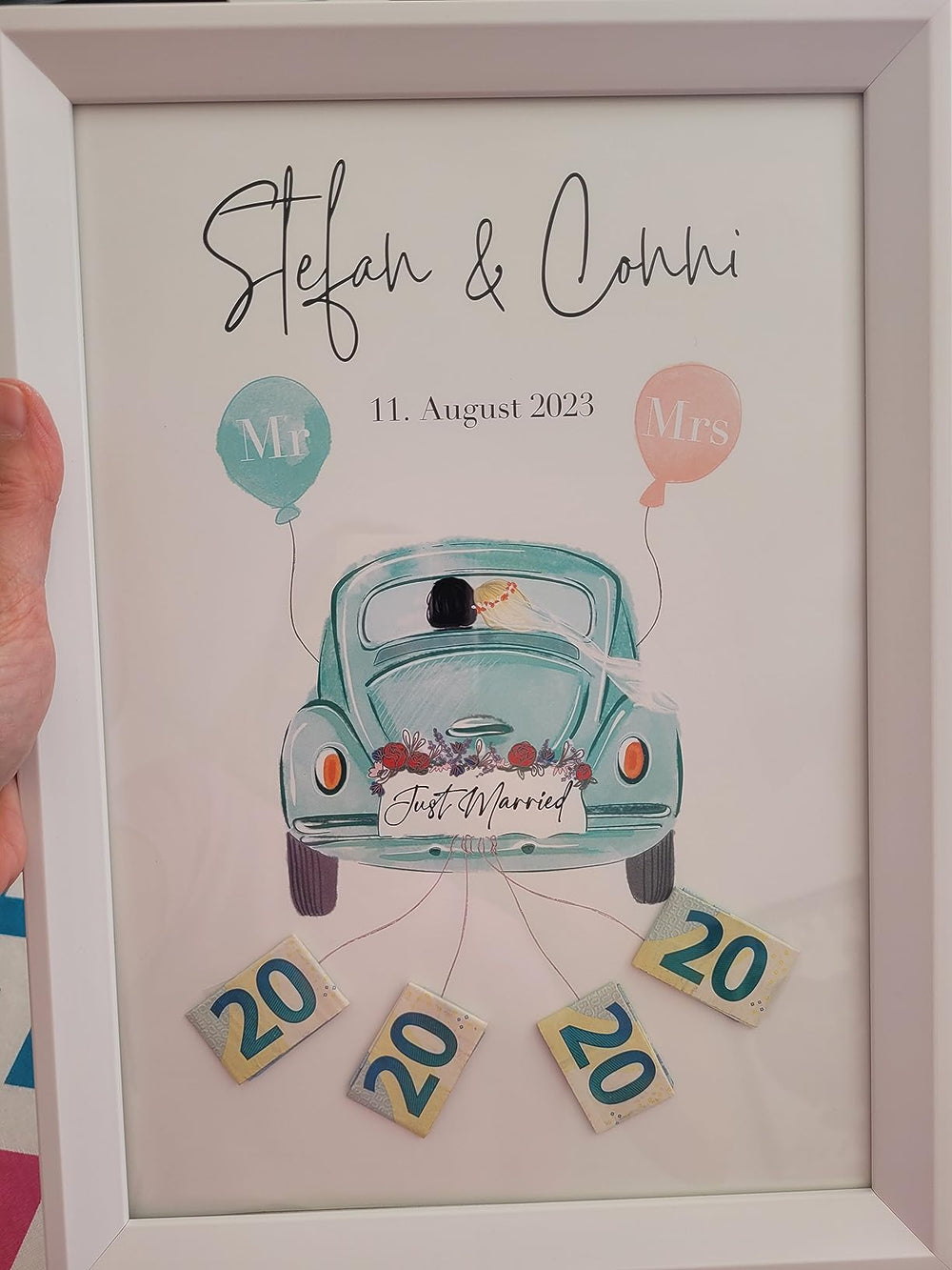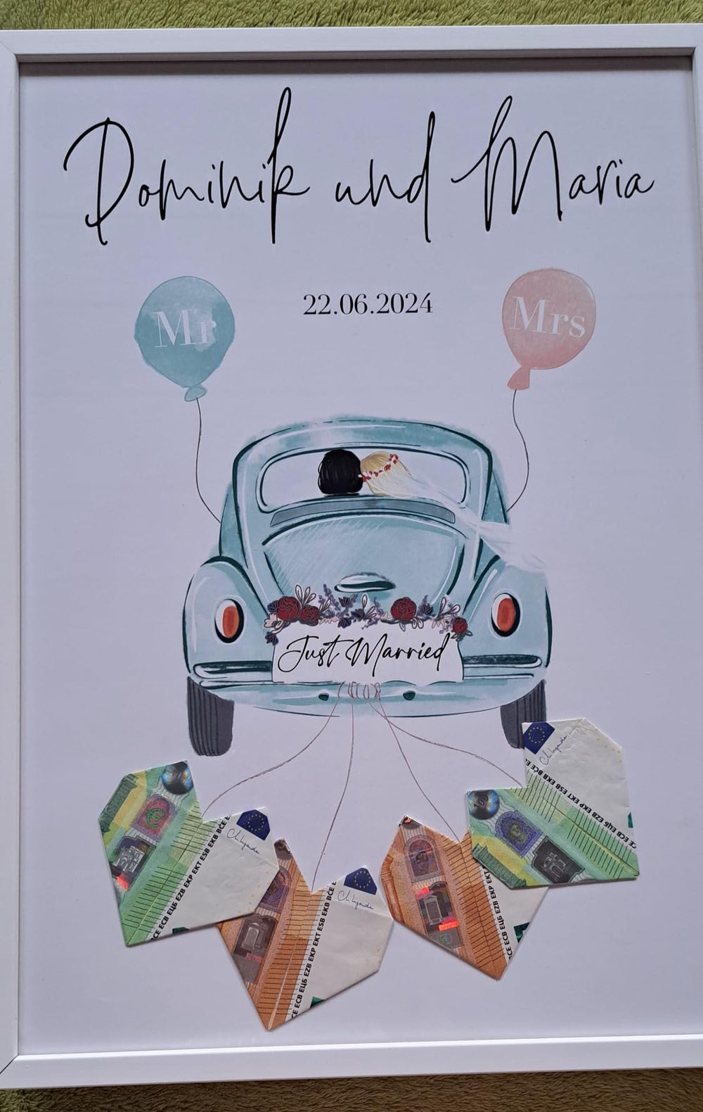 Personalisiertes Poster – Geldgeschenk Hochzeit Blauer Käfer