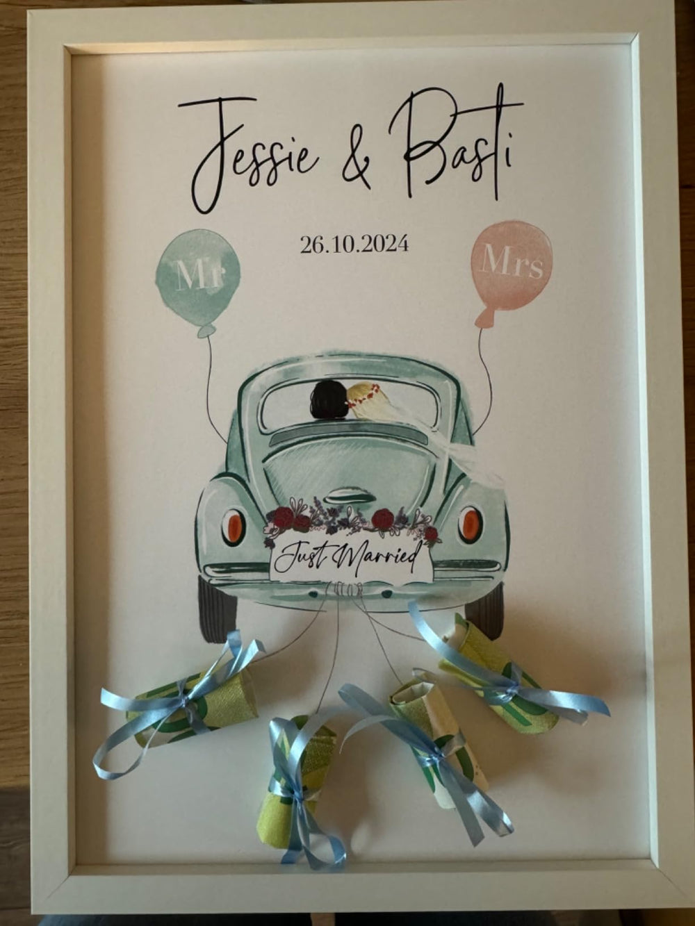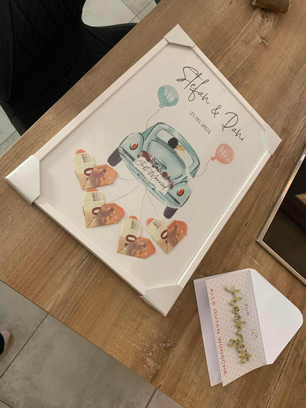 • Hochzeitsgeschenk – Eine Karte ist dir zu langweilig? Mit diesem Poster machst du ein persönliches Geschenk, das das Brautpaar mit einer finanziellen Starthilfe in die Ehe begleitet