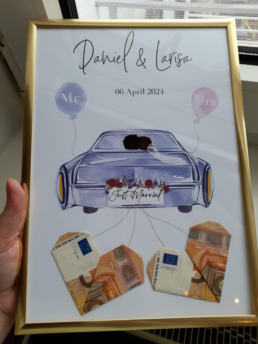 • Hochzeitsgeschenk – Eine Karte ist dir zu langweilig? Mit diesem Poster machst du ein persönliches Geschenk, das das Brautpaar mit einer finanziellen Starthilfe in die Ehe begleitet