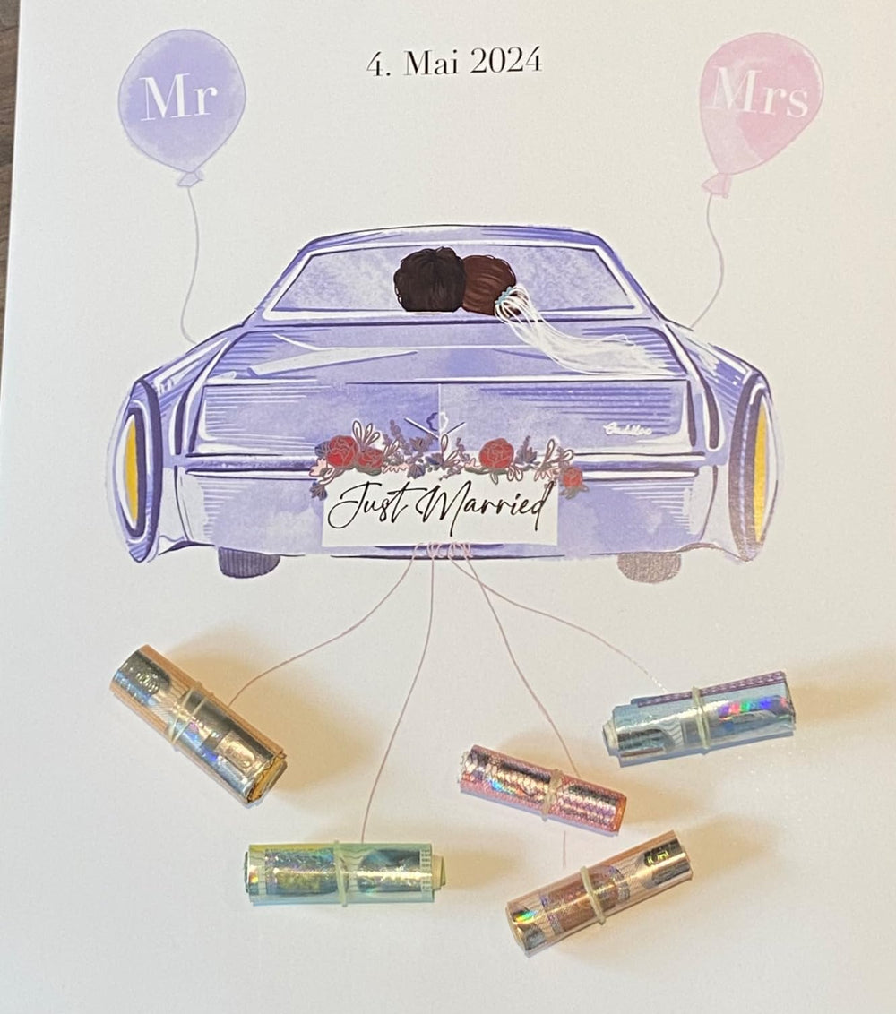 Personalisiertes Poster – Geldgeschenk Hochzeit Lila Cadillac