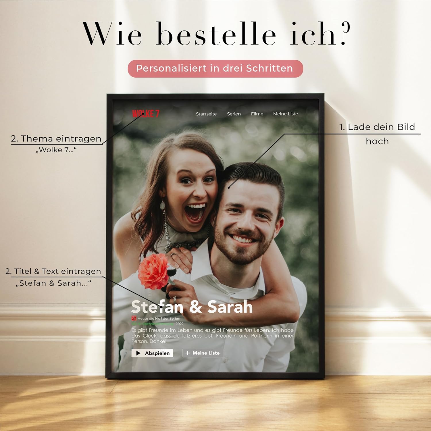 • Jetzt anpassen – Klicke auf „Jetzt anpassen“, um dein Poster zu personalisieren. Personalisierte Geschenke zu verschenken war noch nie so einfach – ideal als Geschenk für die beste Freundin oder als Paar-Geschenk