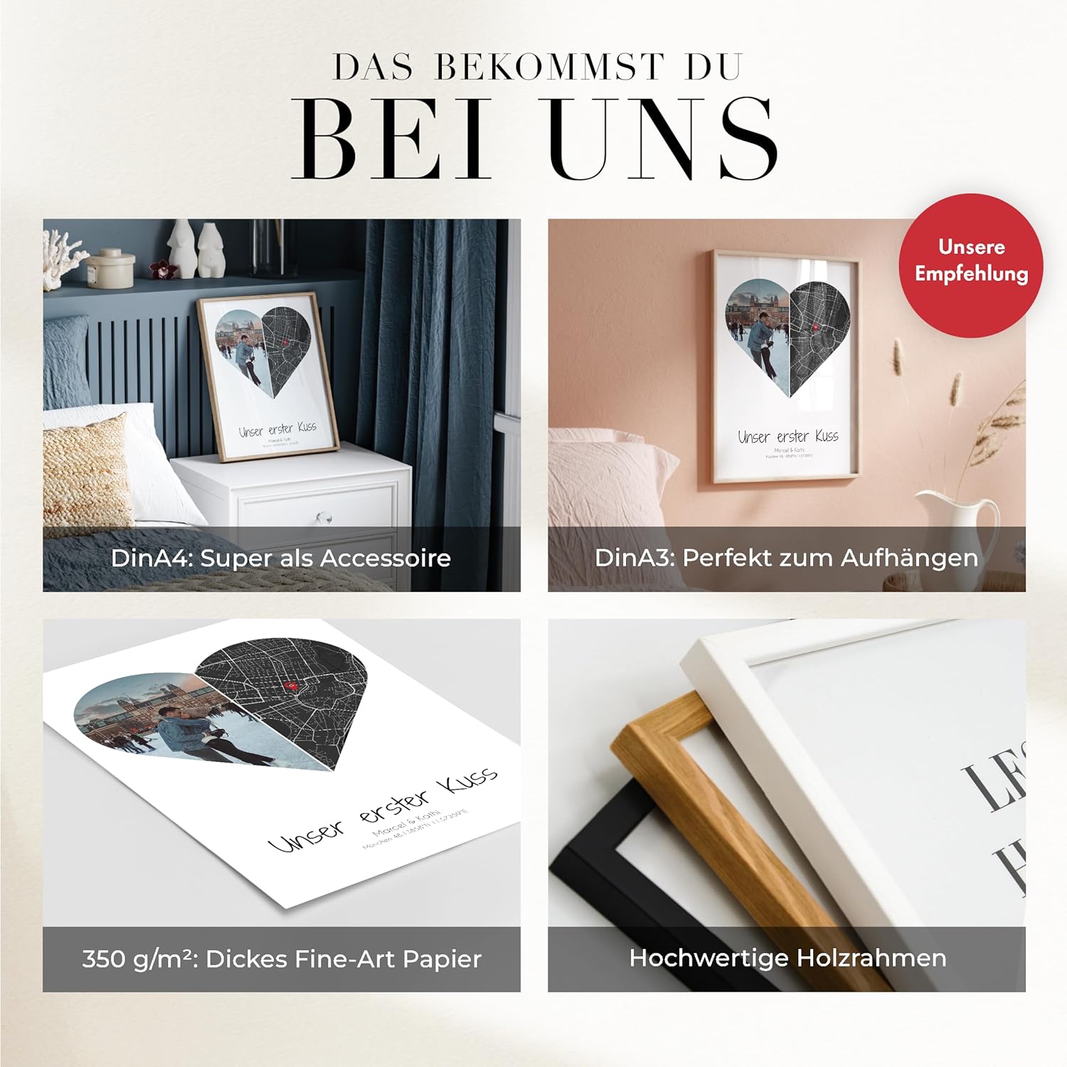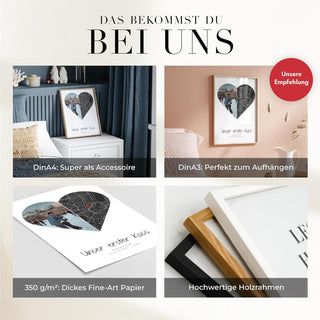 Unsere Designs sind modern, clean und gleichzeitig warm und einladend – perfekt, um deinem Zuhause Charakter zu geben oder jemandem ein einzigartiges Geschenk zu machen. Ob für Hochzeiten, Geburtstage oder einfach als kleines „Danke“ zwischendurch: Unsere Prints berühren Herzen und bleiben unvergesslich.