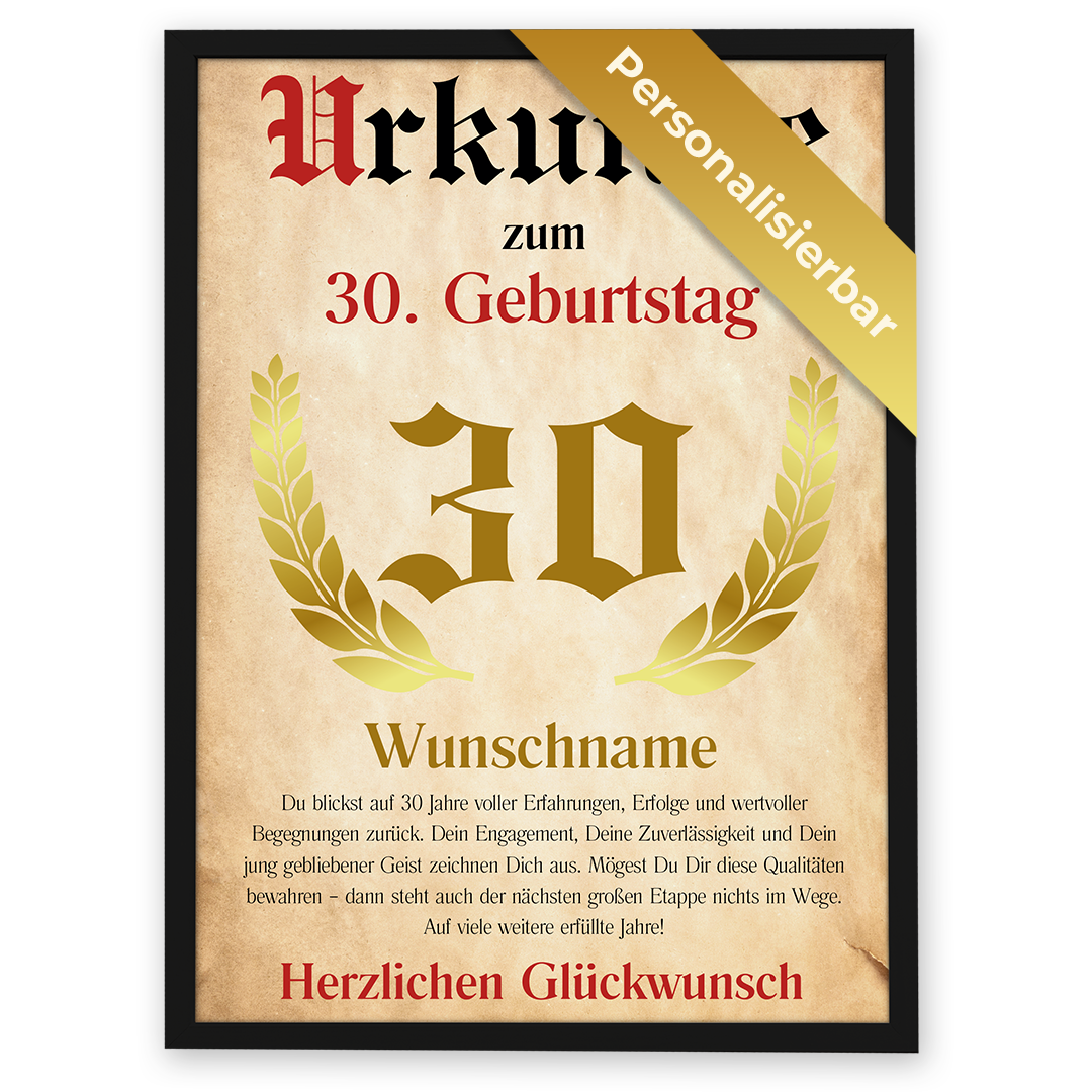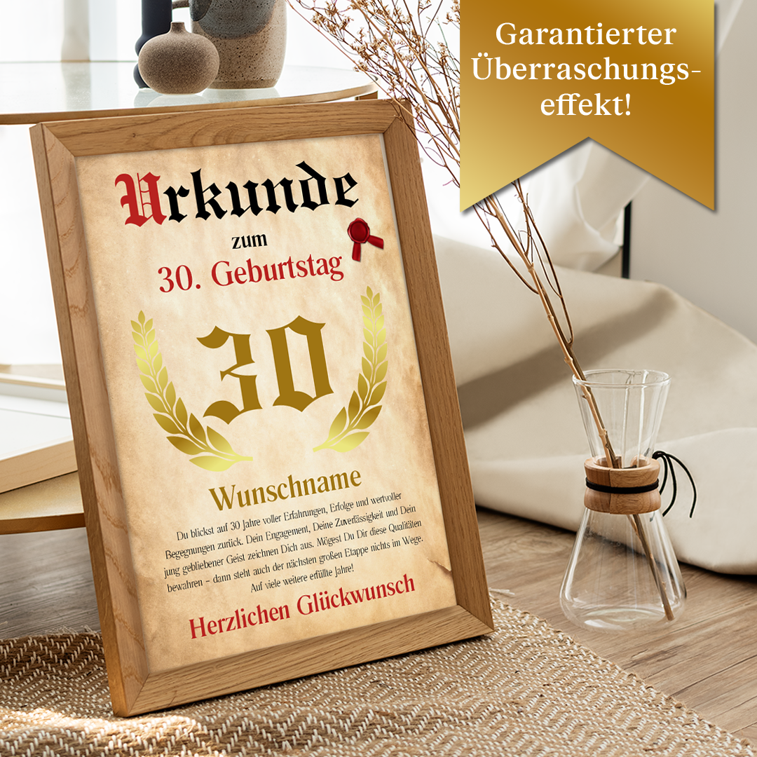 Personalisiertes Poster – Urkunde 30 Jahre