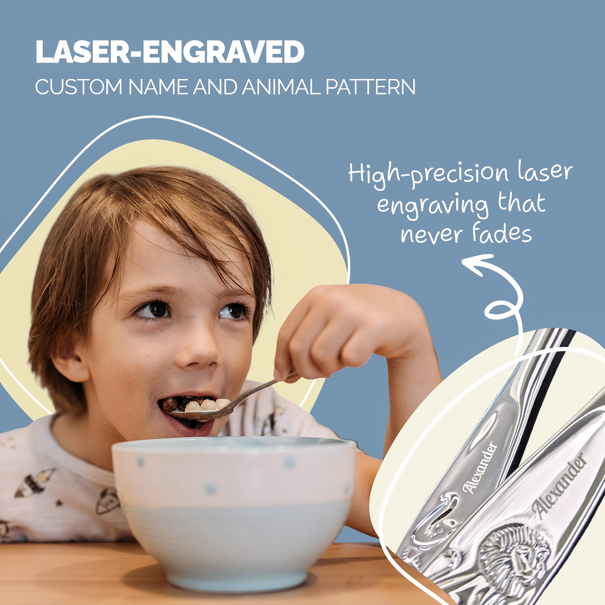 • Fördert die Selbstständigkeit — Das ergonomische Kinderbesteck mit Gravur passt perfekt in kleine Hände und hilft beim eigenständigen Essen – ein Besteck personalisiert für Kinder, das lange Freude macht