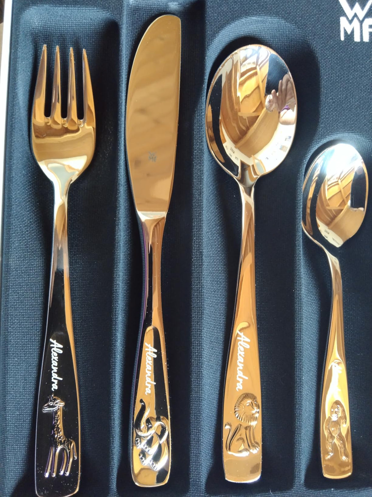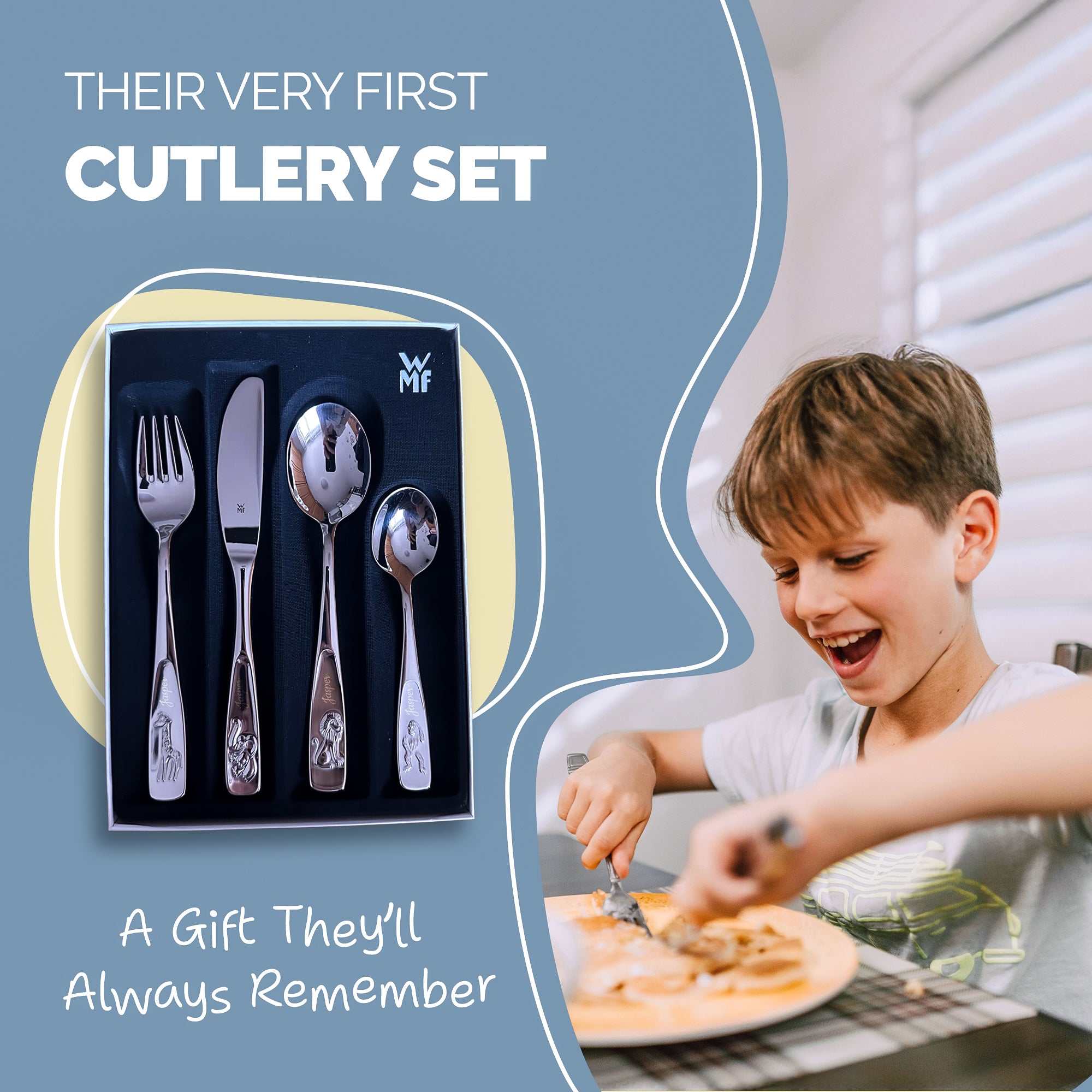 WMF Kinderbesteck mit Namensgravur, 4-teiliges Set aus Edelstahl, Tiere-Motif