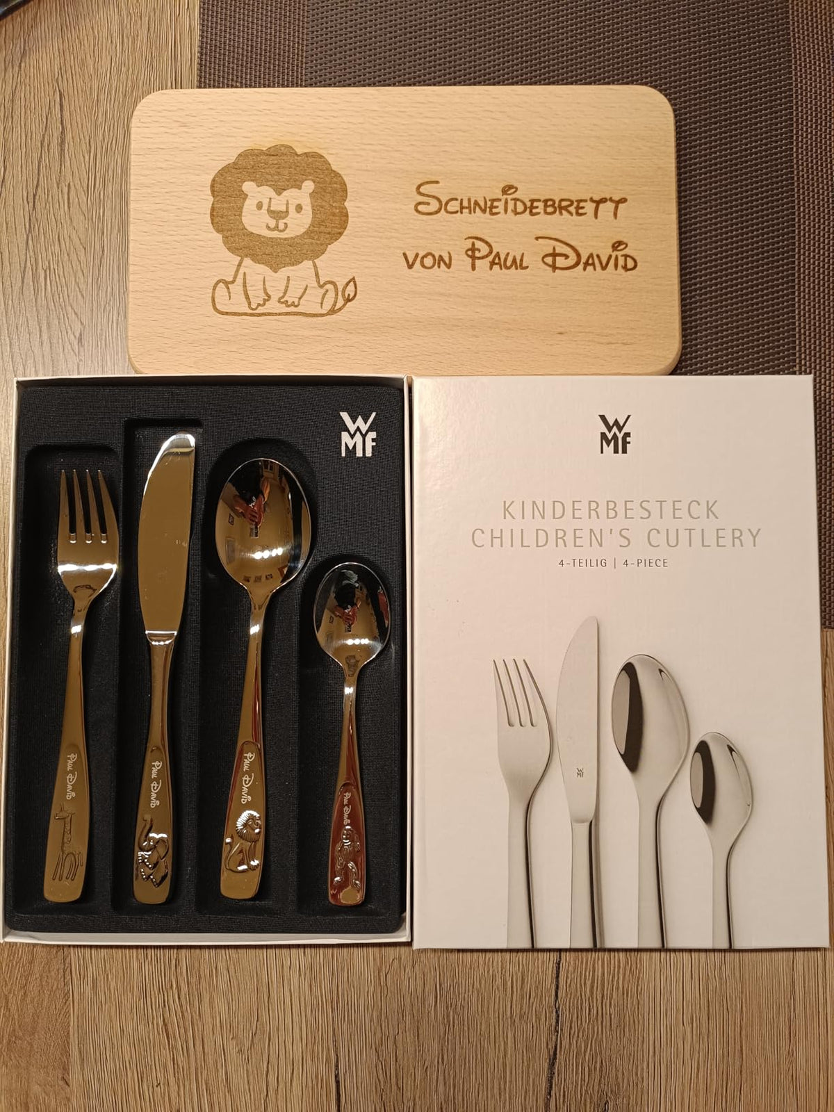 • Perfekt zum Verschenken — Das hochwertige WMF Kinderbesteck mit Gravur kommt in einer Geschenkbox – ein beliebtes Taufgeschenk Junge, ideal auch als personalisierte Geschenke für Kinder oder liebevolles Besteckset